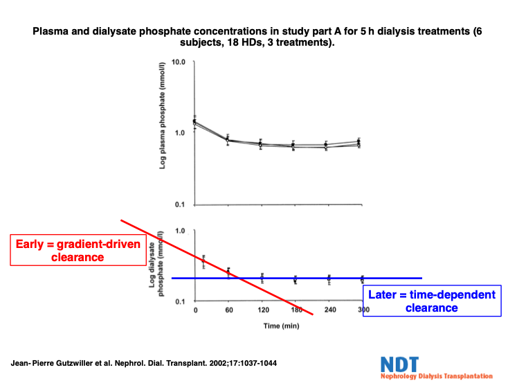 This suggests strongly, and is borne out in reality, that phosphate removal—as with other middle molecules—is governed by dialysis duration. The longer each dialysis treatment, the more efficient is the removal of phosphate and other similarly-duration-dependent middle molecules.
