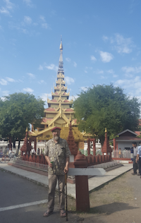 I finished dialysis and went to the Golden Palace, the seat of the last Burmese King before the British drove them out. On the way there, we passed an open air restaurant, so we returned to it. Amazingly, it was exactly what we were after—and only 3 dollars! By now, we were starting to get under Mandalay's skin and becoming enthralled by the narrow streets, overhangs, and endless roadside stalls. We wanted to stop at every one.