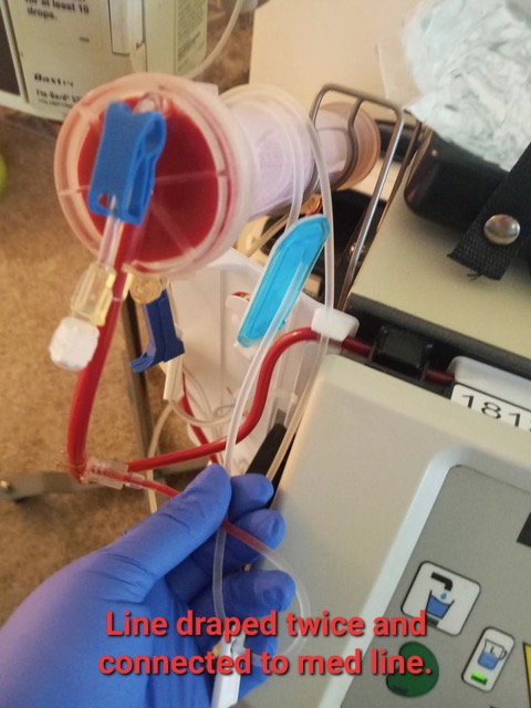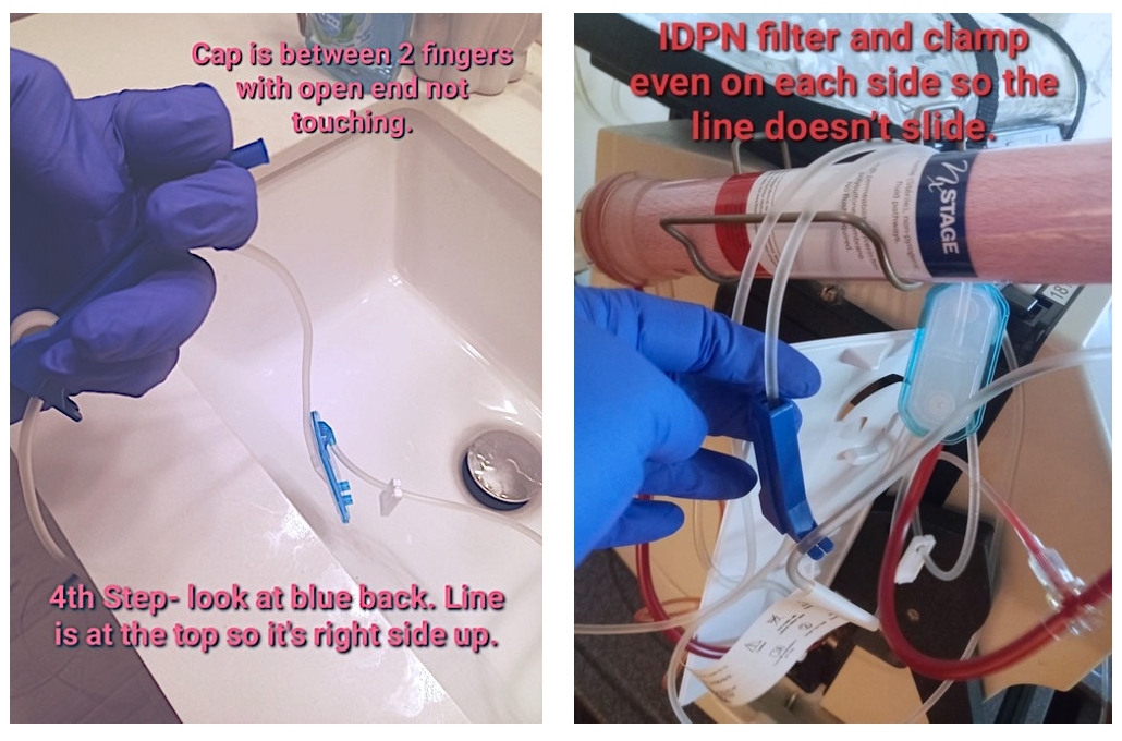 That’s not necessarily a bad thing—the machine helps patients live, and patients should be safe on it. But in the beginning of using IDPN, I’d frequently get a “10 alarm” indicating air when connecting the IDPN line to the med line on the cartridge, even though I wasn’t seeing any air.
